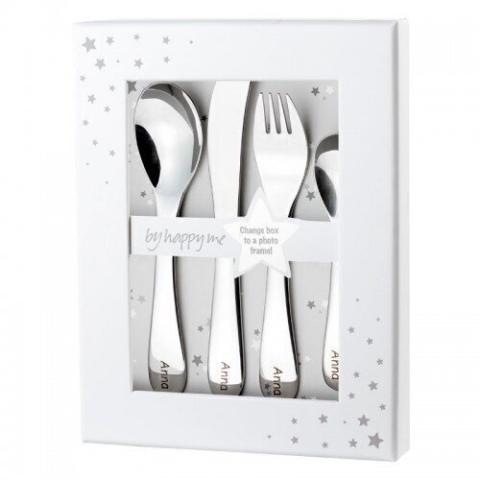 Cet élégant ensemble de couverts en acier inoxydable est le cadeau parfait pour un baptême ou un anniversaire pour une petite fille ou un petit garçon.