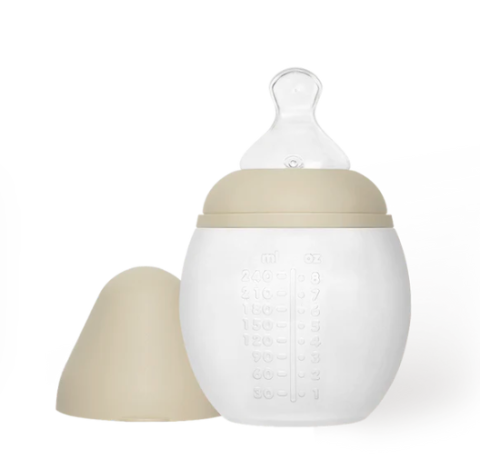 Biberon en silicone médical conçu pour minimiser l’exposition des bébés aux dangers des perturbateurs endocriniens. Le biberon 240ml est équipé d'une tétine physiologique débit Moyen (M), il est idéal pour les bébés à partir de 2 mois, en relais du biberon 150ml. Il peut également être utilisé dès la naissance ou en relais de l'allaitement lorsqu'il est doté d'une tétine à débit Lent (S). Bénéfices du biberon Elhée : - En silicone 100% sain : sans risque de migration micro-particules de plastique dans le lait des bébés. - Anti-colique innovant: 2 fois plus efficace qu'un biberon rigide grâce à la souplesse du biberon associée à une valve anti-colique pour une meilleure ventilation. - Tétine physiologique souple et extra-douce, recommandée par l'UFSBD. - Léger et incassable : la texture souple et veloutée du biberon favorise une expérience sensorielle douce et rassurante et facilite une prise en main dès les premiers mois. - Compatible avec l'allaitement : grâce à sa douceur et sa souplesse semblable au sein maternel, le biberon Elhée permet de conjuguer allaitement maternel et biberon. - Evolutif et durable : le biberon Elhée se transforme en tasse d'apprentissage lorsque le bébé grandit. - Compatible avec les tire-lait Avent, Medela... grâce aux adaptateurs vendus séparément. - Fabriqué en France - Conforme aux normes les plus exigeantes : EN 14350-1 / 124350-2 - FDA, US_CPSIA, California PROP 65 et SOR.