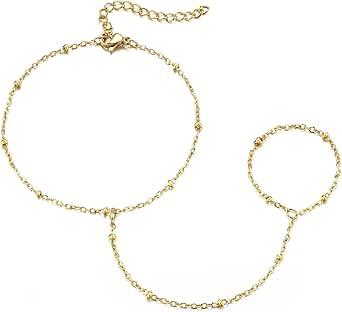 Emibele Gold Hand Chain Bracelets for Women, 18K Gold Plated Dainty Stackable Hand Chain Finger Ring, Non Tarnish Adjustable Trendy Link Chain Bracelet Jewelry Gifts : Amazon.com.be: Mode
