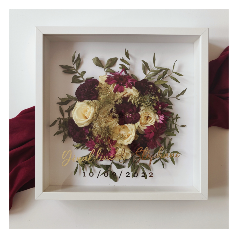 Ce produit est extrait d'une liste de mariage déposée sur Kadolog. Kadolog permet de créer des listes de mariage en toute liberté. Il est possible d'ajouter toutes vos envies cadeaux et de recevoir les dons directement sur votre compte. Avec les dons reçus, vous êtes alors libre d'aller acheter vos produits (comme ce 'Encadrement bouquet mariée ') où et quand vous le souhaitez.