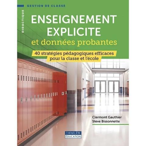 Les chercheurs Gauthier et Bissonnette présentent dans Enseignement explicite et données probantes les stratégies pédagogiques les plus efficaces qui sont au cœur du travail du personnel enseignant. Leur ouvrage constitue une synthèse des recherches sur l’efficacité de l’enseignement et des écoles qu’ils ont menées depuis plus de 30 ans, ainsi que des nombreuses publications qui y sont associées.