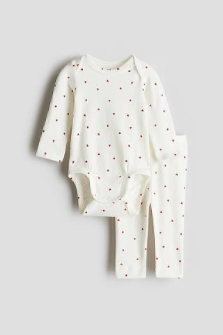 Ensemble en jersey de coton très doux, composé d'un body et d'un legging. Body avec encolure américaine et manches longues. Entrejambe pressionné et coutures froncées autour des jambes pour plus de confort et un meilleur ajustement au niveau de la couche. Legging avec ceinture côtelée et repliée pour un plus grand confort au niveau du ventre.