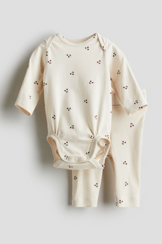 Ensemble en jersey de coton très doux, composé d'un body et d'un legging. Body avec encolure américaine et manches longues. Entrejambe pressionné et coutures froncées autour des jambes pour plus de co...