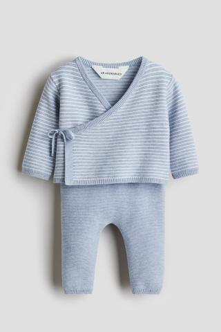Ensemble en maille fine et douce de coton de haute qualité, composé d'un gilet et d'un pantalon. Gilet avec fermeture croisée devant, maintenue par liens à nouer d'un côté et bouton dissimulé de l'autre. Petite finition côtelée le long des bords. Pantalon avec ceinture élastique côtelée et cordon de serrage à la taille. Petite finition côtelée en bas de jambe. La collection H&M Adorables regroupe une sélection d'articles de qualité très confortables au charme intemporel.
