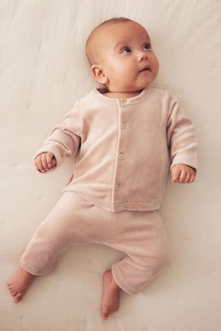 H&M Adorables. Ensemble douillet composé d'un haut et d'un pantalon en doux velours de coton de haute qualité. Haut avec encolure ronde et fermeture par boutons en corozo devant. Pantalon avec élastique et cordon de serrage à la taille. La collection H&M Adorables regroupe une sélection d'articles de qualité très confortables au charme intemporel.