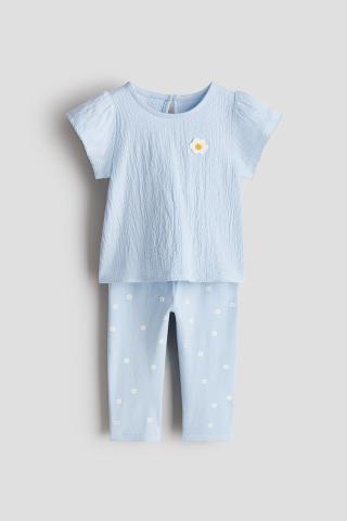 Ensemble en jersey de coton doux, composé d'un top et d'un legging. Top à effet froissé avec encolure ronde et petite application en haut. Manches bouffantes à bord picots et fente goutte d'eau surmontée d'un bouton dans le dos. Legging avec élastique réglable à la taille.