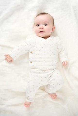 Un ensemble tout en douceur et en confort, idéal pour accompagner les premiers jours des petits garçons. Confectionné en coton doux, il respecte leur peau délicate tout en les gardant bien au chaud. Le body à manches longues à boutons-pression, le cardigan enveloppant style brassière et le pantalon à taille modulable permettent un habillage rapide et s'ajustent à leur morphologie. Un cadeau plein de tendresse pour une naissance !