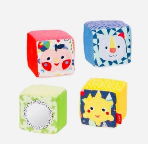 Avec le passionnant jeu de cubes en tissu de la collection COLOR Friends, bébé apprend à découvrir et à appréhender de nouvelles choses de manière ludique.