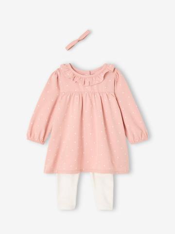 Cet ensemble 3 pièces pour bébé est plein de tendresse ! La robe est imprimée d'un joli