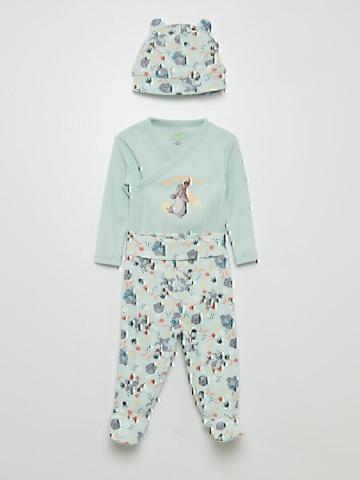 L'ensemble 3 pièces 'Disney' pour être habillé de la tête aux pieds en 'Winnie l'Ourson' ou 'Mowgli'. - Body 100% coton - Manches longues - Col croisé - Ouverture pressionnée - Imprimé devant - Legging avec pieds - 100% coton - Taille élastique - Motifs all-over - Bonnet 100% coton - Imprimé assorti - Oreilles en relief