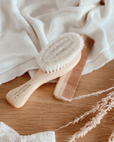 en toute liberté. Il est possible d'ajouter toutes vos envies cadeaux et de recevoir les dons directement sur votre compte. Avec les dons reçus, vous êtes alors libre d'aller acheter vos produits (comme ce 'Ensemble brosse et peigne en bois - bébé - GOLDRICK - Lou in Woods