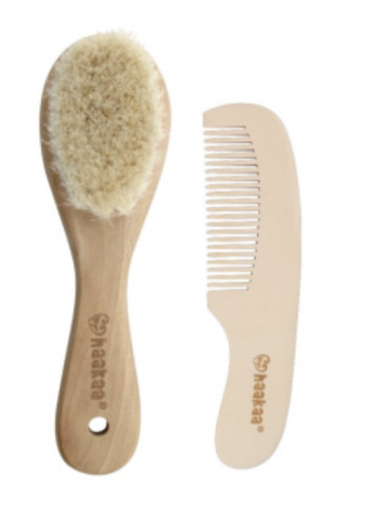 Pour prendre soin de ses petits cheveux délicats, nous avons ajouté la brosse en laine de chèvre Haakaa : toute douce, parfaite pour le cuir chevelu de bébé.