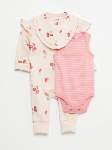 Cet ensemble sera le cadeau idéal ! - Dors-bien côtelé - Manches longues - Ouverture zippée - Evolutif : ajustable au niveau des poignets et des chevilles - Imprimé fantaisie - Body - Sans manches - Ouverture à pressions à l'entrejambe - Bavoir assorti