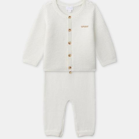 en toute liberté. Il est possible d'ajouter toutes vos envies cadeaux et de recevoir les dons directement sur votre compte. Avec les dons reçus, vous êtes alors libre d'aller acheter vos produits (comme ce 'Ensemble gilet + pantalon écru Naissance Mixte
