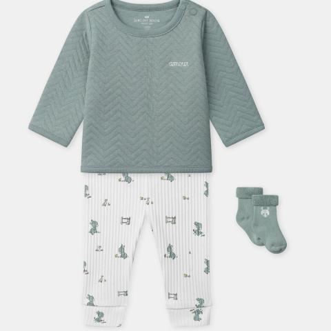 Ce produit est extrait d'une liste de naissance déposée sur Kadolog. Kadolog permet de créer des listes de naissance en toute liberté. Il est possible d'ajouter toutes vos envies cadeaux et de recevoir les dons directement sur votre compte. Avec les dons reçus, vous êtes alors libre d'aller acheter vos produits (comme ce 'Ensemble haut bleu grisé + pantalon + chaussettes Naissance Garçon ') où et quand vous le souhaitez.