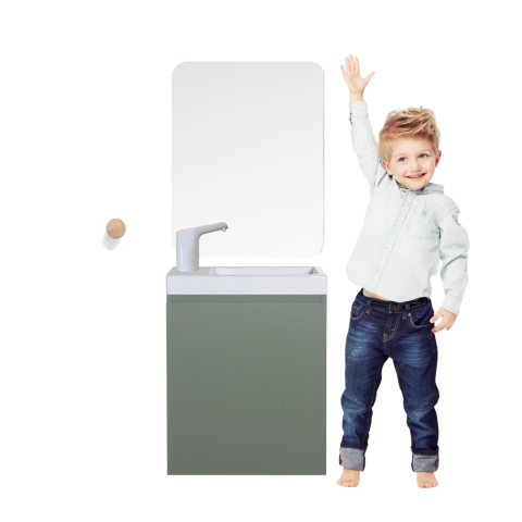 Offrez à votre enfant un espace de toilette ergonomique, sécurisé et adapté à sa taille avec l’ensemble lavabo enfant Feny, comprenant un lavabo autonome, un miroir incassable et un porte-serviette intégré. Conçu pour encourager l'autonomie et l'apprentissage des bonnes habitudes d'hygiène, cet ensemble est idéal pour