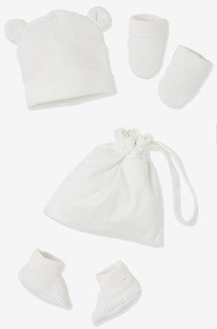 en toute liberté. Il est possible d'ajouter toutes vos envies cadeaux et de recevoir les dons directement sur votre compte. Avec les dons reçus, vous êtes alors libre d'aller acheter vos produits (comme ce 'Ensemble moufles, chaussons et bonnet de naissance