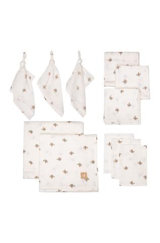 Un ensemble hydrophile est indispensable pour tous les parents ! Les chiffons sont polyvalents et peuvent être utilisés, par exemple, comme serviette, bavoir ou comme matelas à langer pour les déplacements. Ils absorbent beaucoup d'humidité et sont merveilleusement doux, donc adaptés à la peau de bébé. Dans ce kit de démarrage, vous trouverez 2 grandes lingettes hydrophiles (115x115 cm), 3 petites lingettes hydrophiles (70x70 cm), 3 lingettes buccales et 3 débarbouillettes.