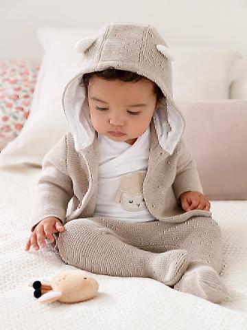 On craque pour ses petites oreilles ! Ce kit de naissance est parfait pour faire un joli cadeau. Un point mousse souple et confortable disponible dès 45 cm et des détails charmants... Cet ensemble s