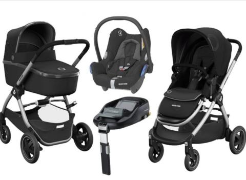 Ensemble poussette Maxi Cosi Adorra 3 en 1 (base isofix & miroir voiture compris) acheté en seconde main. Le top pour faire de longues ballades.