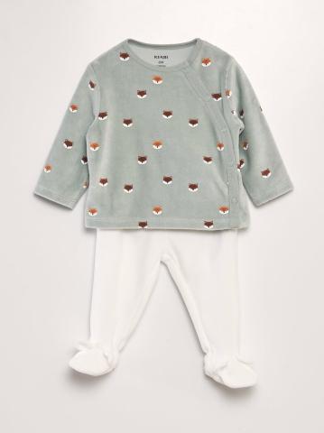 Un pyjama chaud, confortable, parfait pour les journées ou les nuits un peu plus fraîches de bébé ! - Haut en velours - Encolure ronde - Manches longues - Ouverture boutons à pressions latéral - Possible d'attacher le pantalon au haut par boutons à pressions - Pantalon en velours - Taille élastiquée - Avec pieds