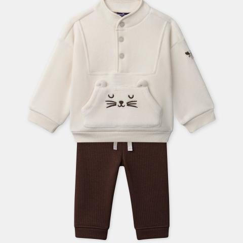 Pensé pour les aventuriers en hiver, cet ensemble assure chaleur et confort. Sweat en polaire ivoire avec poche kangourou et patch cerf, legging côtelé fourré marron foncé avec taille élastiquée. Les finitions pratiques et douces accompagnent toutes les activités. Ensemble sweat et legging : Sweat : Sweat en polaire i