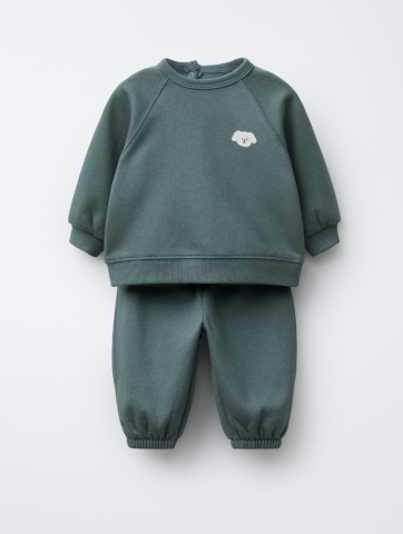Ensemble deux pièces. Sweat à col rond et manches longues. Finitions côtelées. Fermeture par bouton-pression à l'épaule. Imprimé sur la poitrine. Pantalon type jogger avec ceinture élastique. Bas fini par poignets.