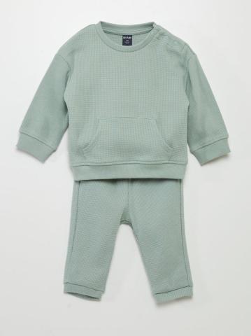 L'ensemble ultra-tendance en nid d'abeilles ! - Sweat - Matière en nid d'abeilles - Manches longues - Encolure ronde - Ouverture pressionnée à l'épaule - Pantalon jogging - Taille élastique - Chevilles resserrées