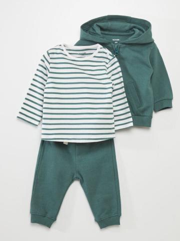 L'ensemble monochrome pour bébé ! - Sweat zippée en molleton - Col capuche - Manches longues - Finitions bords-côtes col, poignets, base - Pantalon assorti - En molleton - Ceinture élastique + cordons - Revers bas de jambe - T-shirt rayé - En jersey - Boutonnée à l'épaule