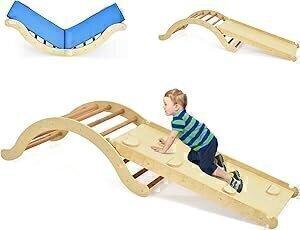 Une arche de psychomotricité, avec la partie escaliers et la partie planche pour glisser/escalader
