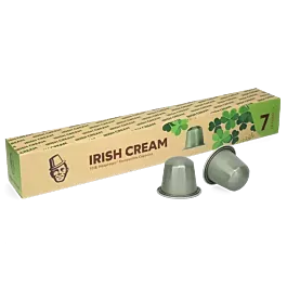 Geniet van de rijke, uitnodigende smaken van Espresso Irish Cream, verpakt in 10 handige aluminium capsules compatibel met uw Nespresso®-apparaat. Deze voortreffelijke blend brengt de heerlijke essentie van crème likeur naar uw kopje, en voegt een luxueuze romigheid toe die koffieliefhebbers zullen waarderen. Met subtiele hints van vanille en whisky voert elke slok u mee naar een wereld van comfort en verfijning. Voor een extra vleugje verwennerij, voeg wat melk toe. Ideaal om te ontspannen aan het einde van de dag. Zet het als een espresso om de volle, boeiende smaak te ervaren. Deze capsules zijn niet verbonden aan en zijn niet vervaardigd of goedgekeurd door Nestlé®.