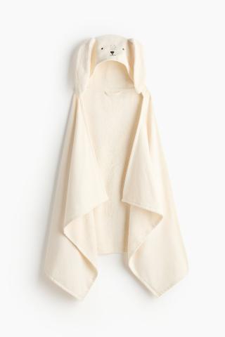 Drap de bain en coton éponge doux. Modèle avec oreilles appliquées sur la capuche et bride de suspension dans la nuque.