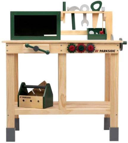 Établi Plein air Playtive parkside 69 pièces - 70 x 40 x 81 cm - Tableau lavable avec 3 craies - Coffret à outils inclus. Description /// ÉDITION...