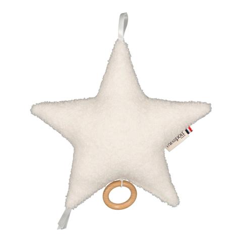 L'étoile musicale en moumoute super douce et facile à attraper pour les petites mains de bébé. Une texture ultra-moelleuse, de quoi faire de beaux rêves grâce à sa mélodie de La Boum. Made in France.