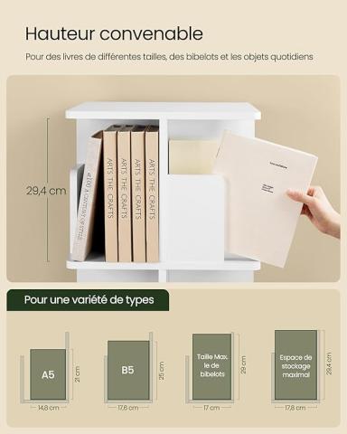 EUGAD Bibliothèque Rotative 360°4 Niveaux 16 Compartiments - Salon Bureau 40x129x40 cm, Blanc : Amazon.com.be: Cuisine et maison
