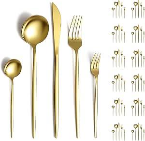 Evanda Set de couverts en or 60 pièces pour 12 personnes, Set de couverts en acier inoxydable plaqué or titane, Couteaux Fourchettes Cuillères Set de couverts pour mariage, fêtes, anniversaire. : Amazon.com.be: Cuisine et maison