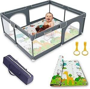 EveryKip® Parc Bebe 120x120CM | Parc Enfant Modulable Avec Tapis | Barriere Parc Bébé Parc de Jeux | Tapis Et Anneaux Inclus : Amazon.fr: Bébé et Puériculture