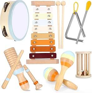 Exyvox Ensemble de Jouets Musicaux - 12PCS Instrument de Musique pour Bébé, Xylophone Bébé, Jouet en Bois Montessori pour Fille et Garçon 3-5 Ans : Amazon.com.be: Jouets