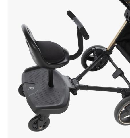 La planche à roulettes Tony est idéale pour accompagner les sorties en famille dès 15 mois. Grâce à ses attaches universelles, elle s’adapte à la plupart des poussettes et permet une utilisation assise ou debout.