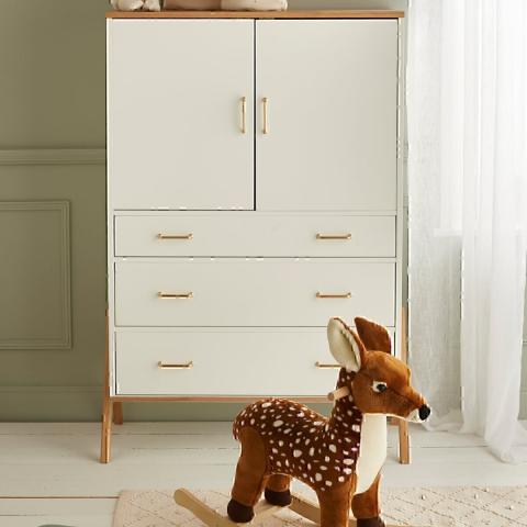 Le traditionnel cheval à bascule se décline dans une version nouvelle. Peluche XXL dotée de poignées et de repose-pieds, le faon à bascule demeure un jouet intemporel pour les petits et une jolie déco dans la chambre. o Faon en polyester, structure en bois. o Avec poignée et repose-pieds. Dim. L.68 x l.29 x H.64,5 cm
