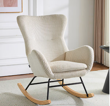Rocking-chair en velours côtelé beige pour allaiter bébé