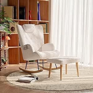 Fauteuil à Bascule en Tissu Peluche, Chaise Rocking avec Appui-Tête, Poche Latérale et Repose-Pieds, Rocking Chair, Fauteuil de Salon Blanc : Amazon.com.be: Cuisine et maison