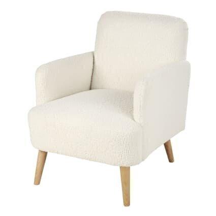 Fauteuil bouclettes blanches et pieds en bois de hêtre Honey sur Maisons du Monde. Piochez parmi nos meubles et objets déco et faites le plein d’inspiration !