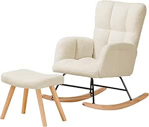 Comhomma Fauteuil de relaxation avec accoudoirs, fauteuil club en peluche teddy, fauteuil à bascule, charge maximale 150 kg, chaise longue pour jardin, salon, design élégant Beige : Amazon.fr: Cuisine et Maison