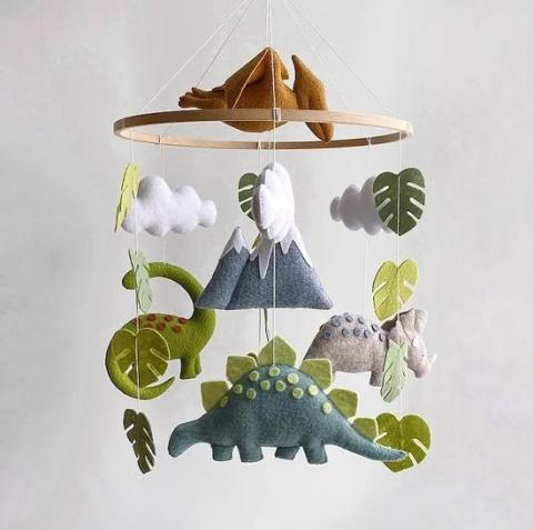 Fay&May® Boxmobiel Vilt – Dino's – 100 % Handgemaakt – Duurzamer – No Plastic – Babyshower – Kraamkado – Babykado – Gender Reveal – Wiegmobiel. Met...