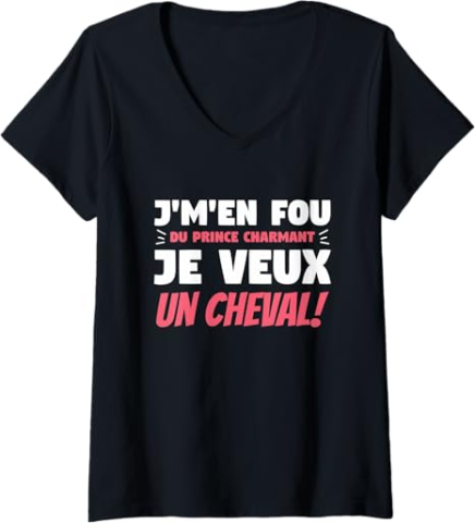 Femme J'm'en Fou Du Prince Charmant Je Veux Un Cheval T-Shirt with V-Neck : Amazon.fr: Fashion