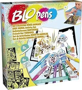 Lansay - BLOPENS - Set Activités Bébés Animaux - Feutres de Coloriage À Souffler avec Pochoirs Réutilisables
