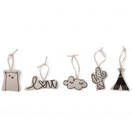 Les figures à suspendre en toile - 5 pcs de Childhome peuvent être combinées avec les arches de jeux de la marque et se fixent facilement avec des rubans.