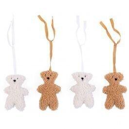 Les figures à suspendre en toile Teddy - 4 pcs de Childhome peuvent être combinées avec les arches de jeux de la marque et se fixent facilement avec des rubans.