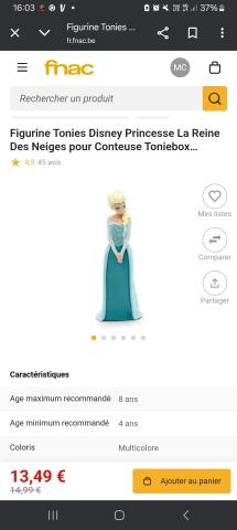 Ce produit est extrait d'une liste de cadeaux (Anniversaire, Noël, ...) déposée sur Kadolog. Kadolog permet de créer des listes de cadeaux (Anniversaire, Noël, ...) en toute liberté. Il est possible d'ajouter toutes vos envies cadeaux et de recevoir les dons directement sur votre compte. Avec les dons reçus, vous êtes alors libre d'aller acheter vos produits (comme ce 'Figurine Tonies Disney Princesse La Reine Des Neiges pour Conteuse Toniebox Collection Se divertir ') où et quand vous le souhaitez.